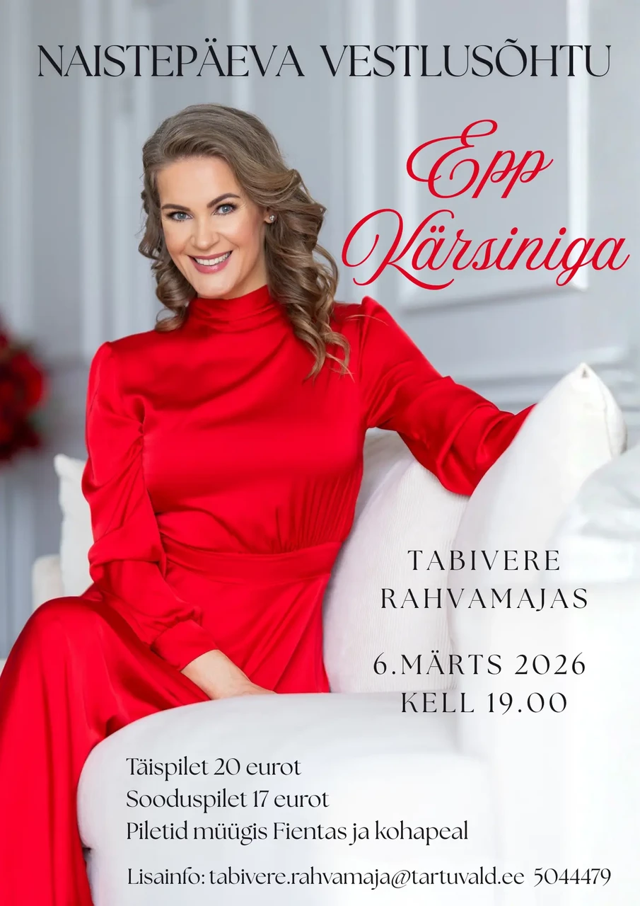 06. märts kell 19.00 naistepäeva vestlusõhtu Epp Kärsiniga